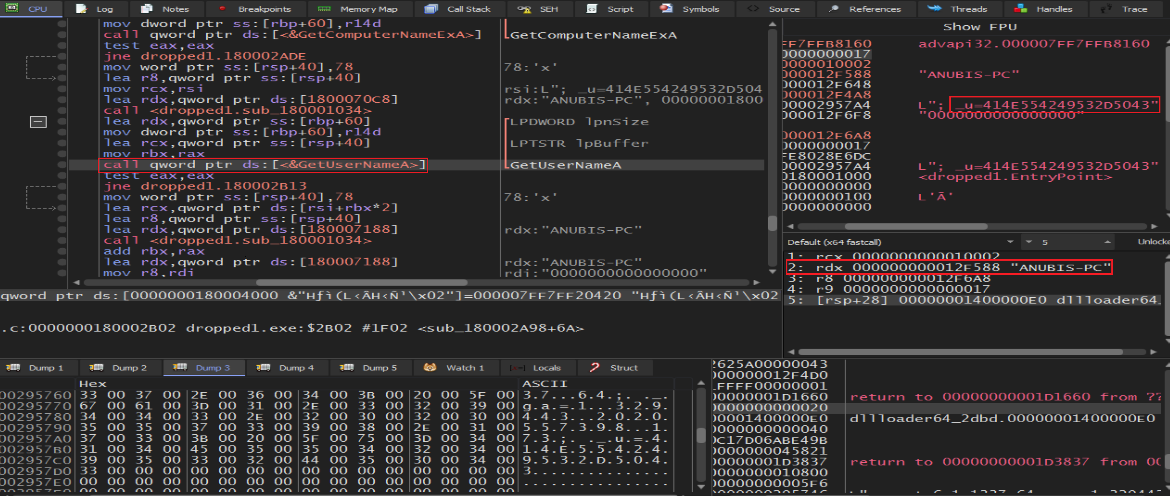 From Kernel32 malware will import functions called GetComputerNameExA and GetUserNameA to get some information about the computer and the user.