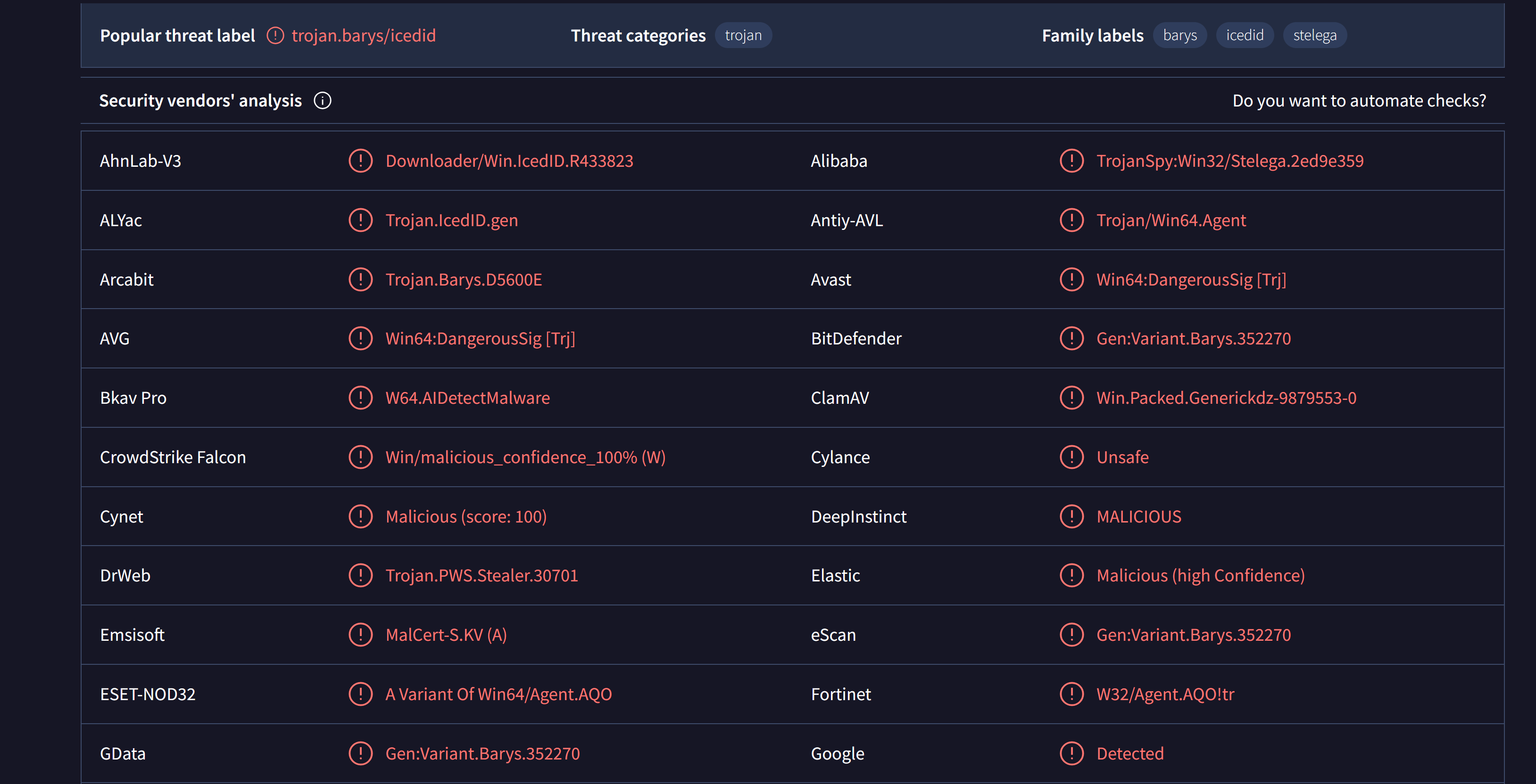IcedID is a banking trojan-type malware which allows attackers to utilize it to steal banking credentials of the victims. IcedID aka BokBot mainly targets businesses and steals payment information, it also acts as a loader and can deliver another viruses or download additional modules.